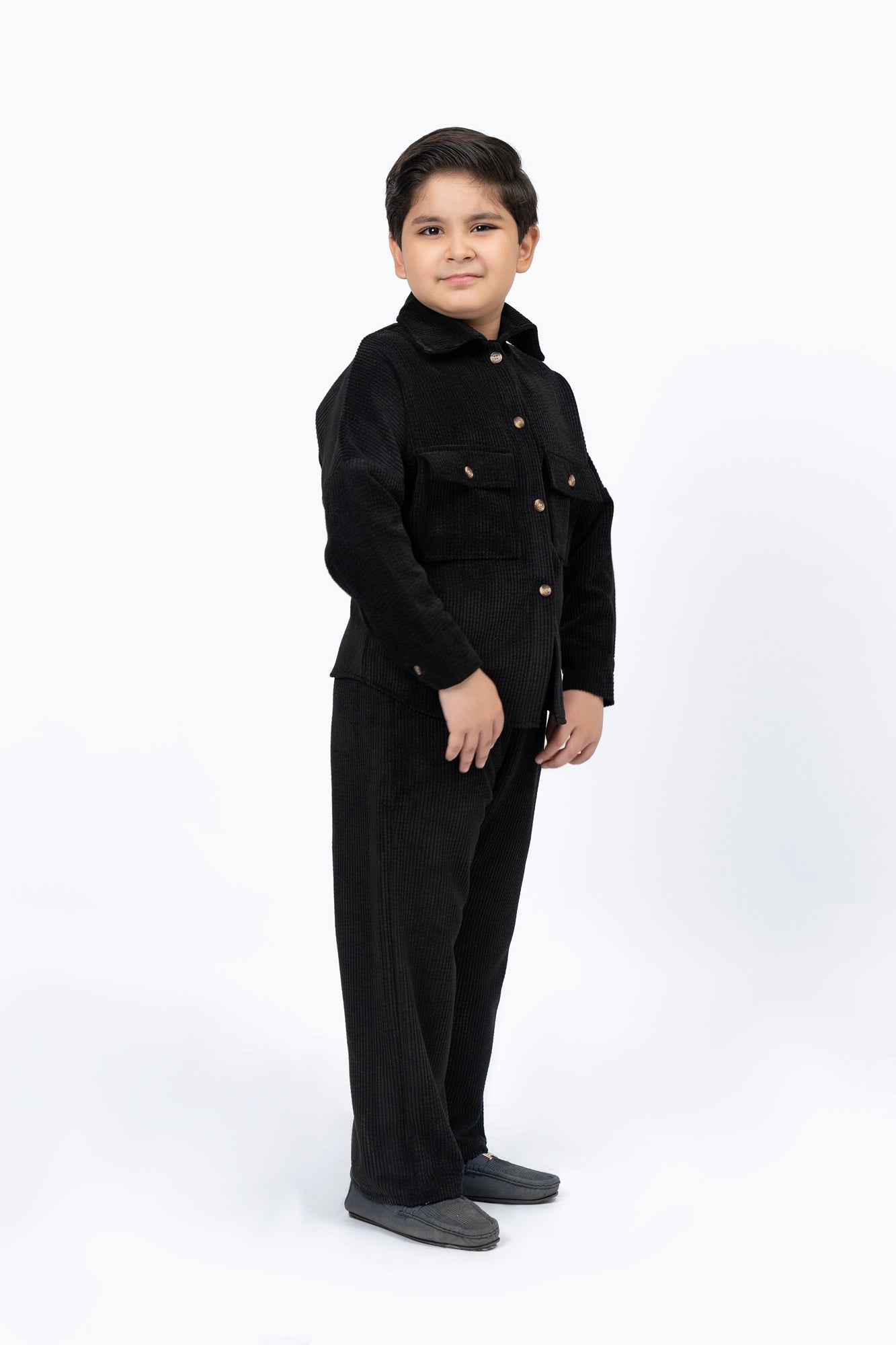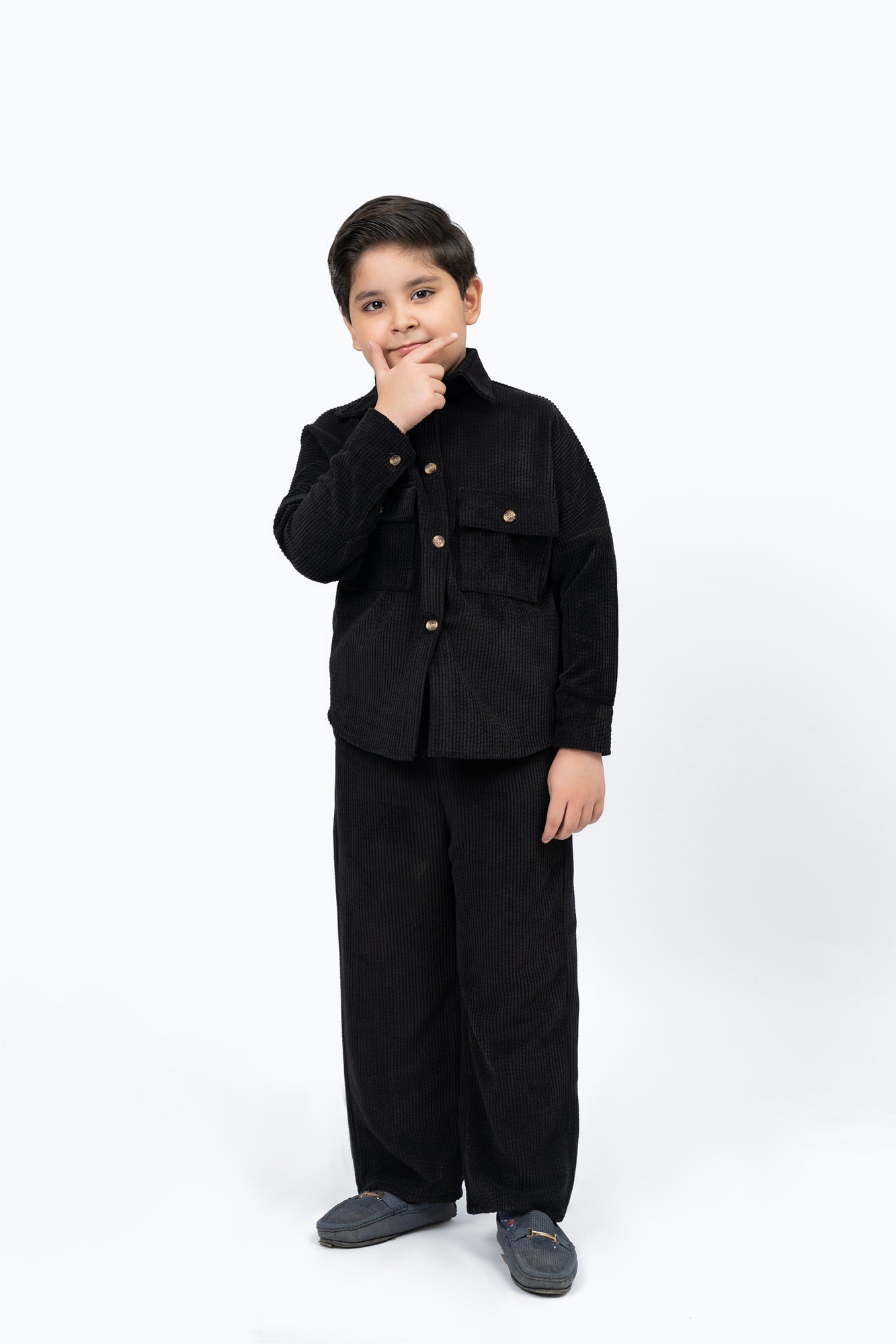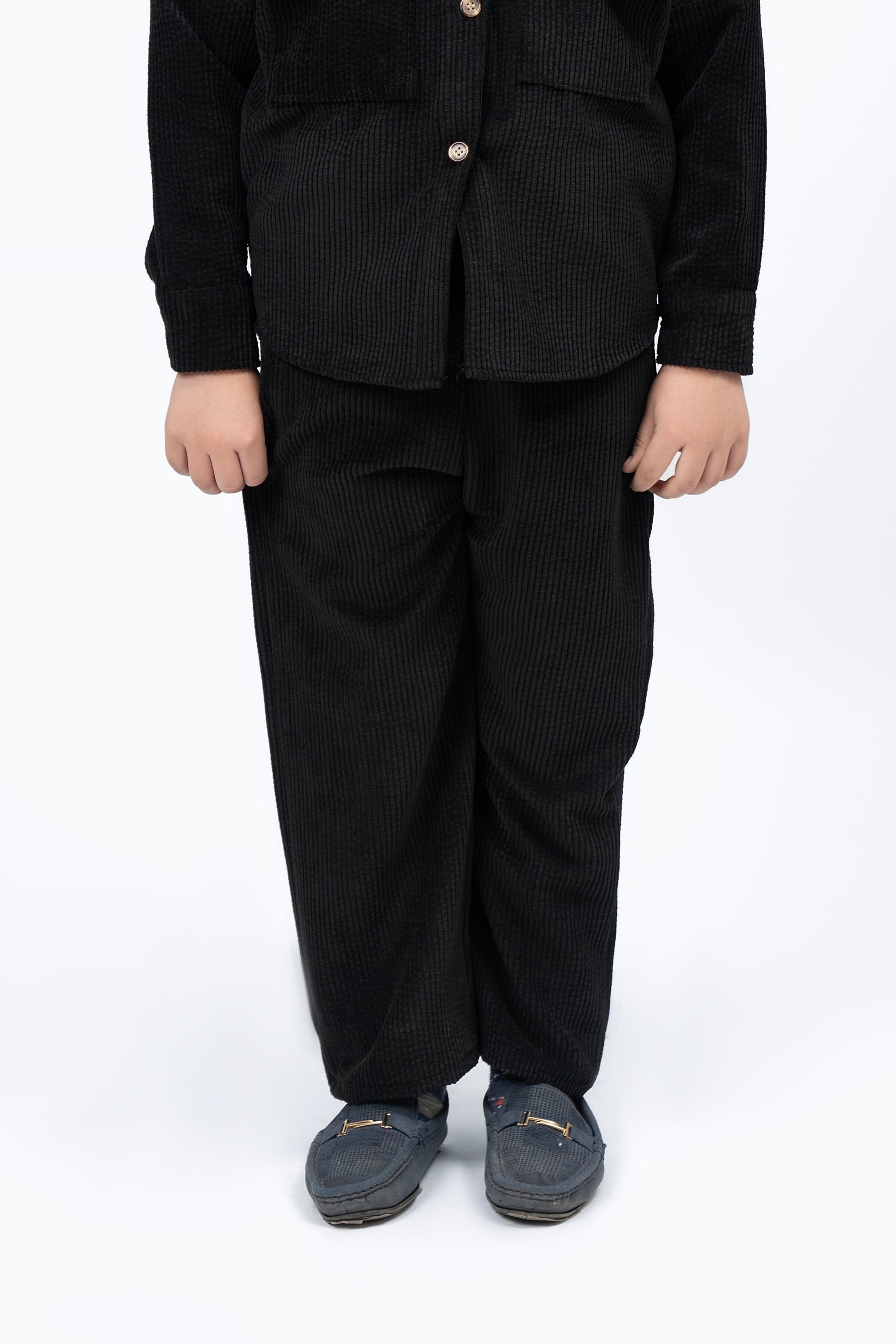 Boys Wide Leg Pant with Pockets in Corduroy - Black