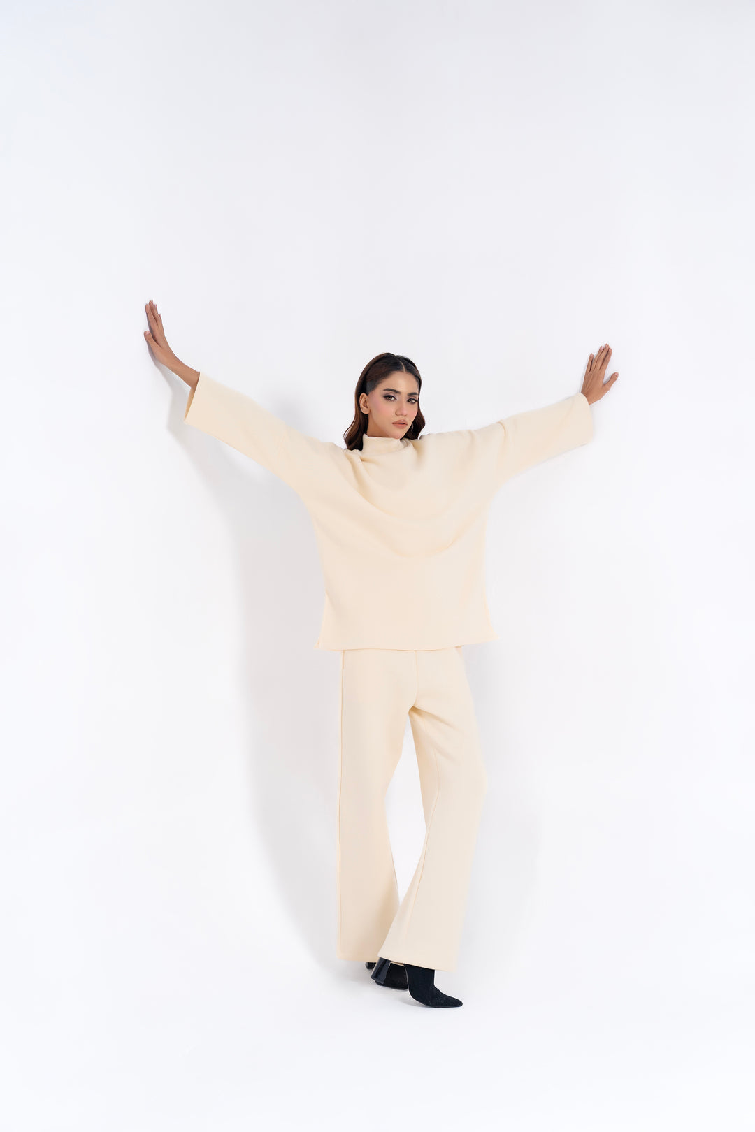 Elevated comfort meets contemporary style with these high-rise wide-leg fleece pants. The straight silhouette flatters all proportions, while the elasticated waist ensures a secure, adjustable fit. Functional side pockets add practicality to this versatile wardrobe essential. Perfect for effortless, polished everyday wear.