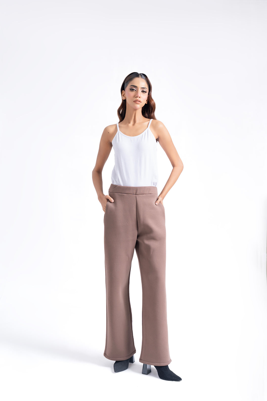Elevate your casual wardrobe with these high-rise wide-leg fleece pants in a versatile taupe shade. Designed with a comfortable elasticated waist and straight silhouette, they offer effortless style and movement. Practical side pockets add functionality to this wardrobe essential.