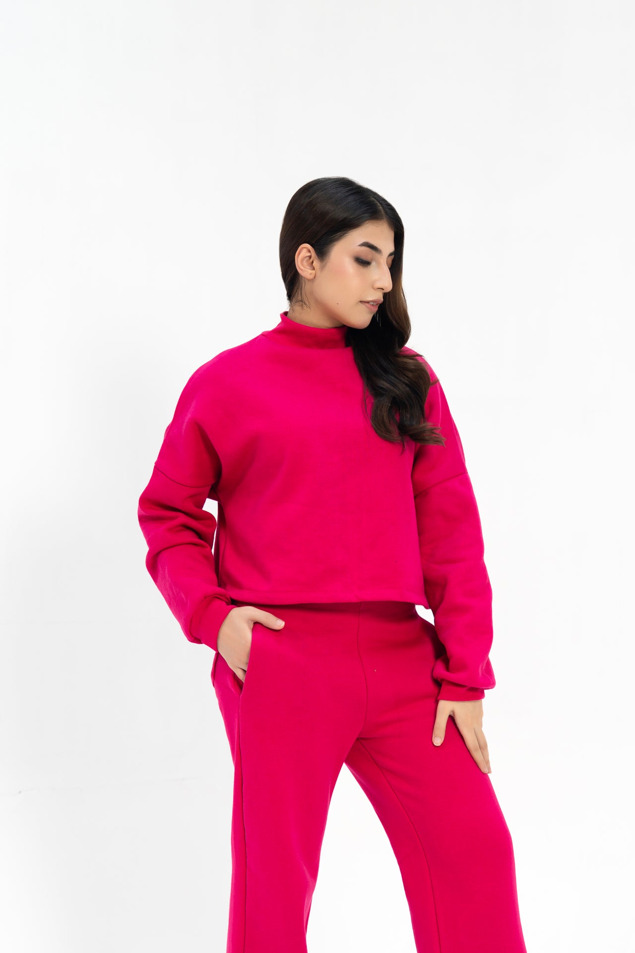 Wide Leg Fleece Sweatpants - Fuchsia Pink
