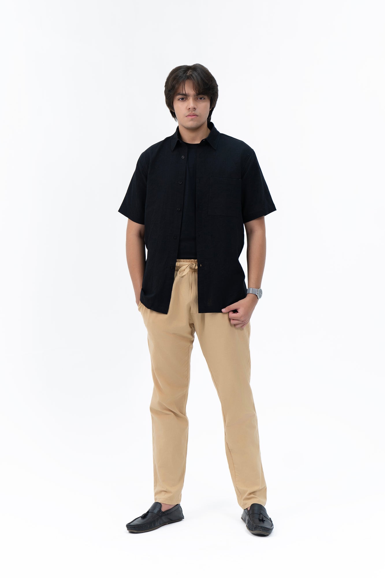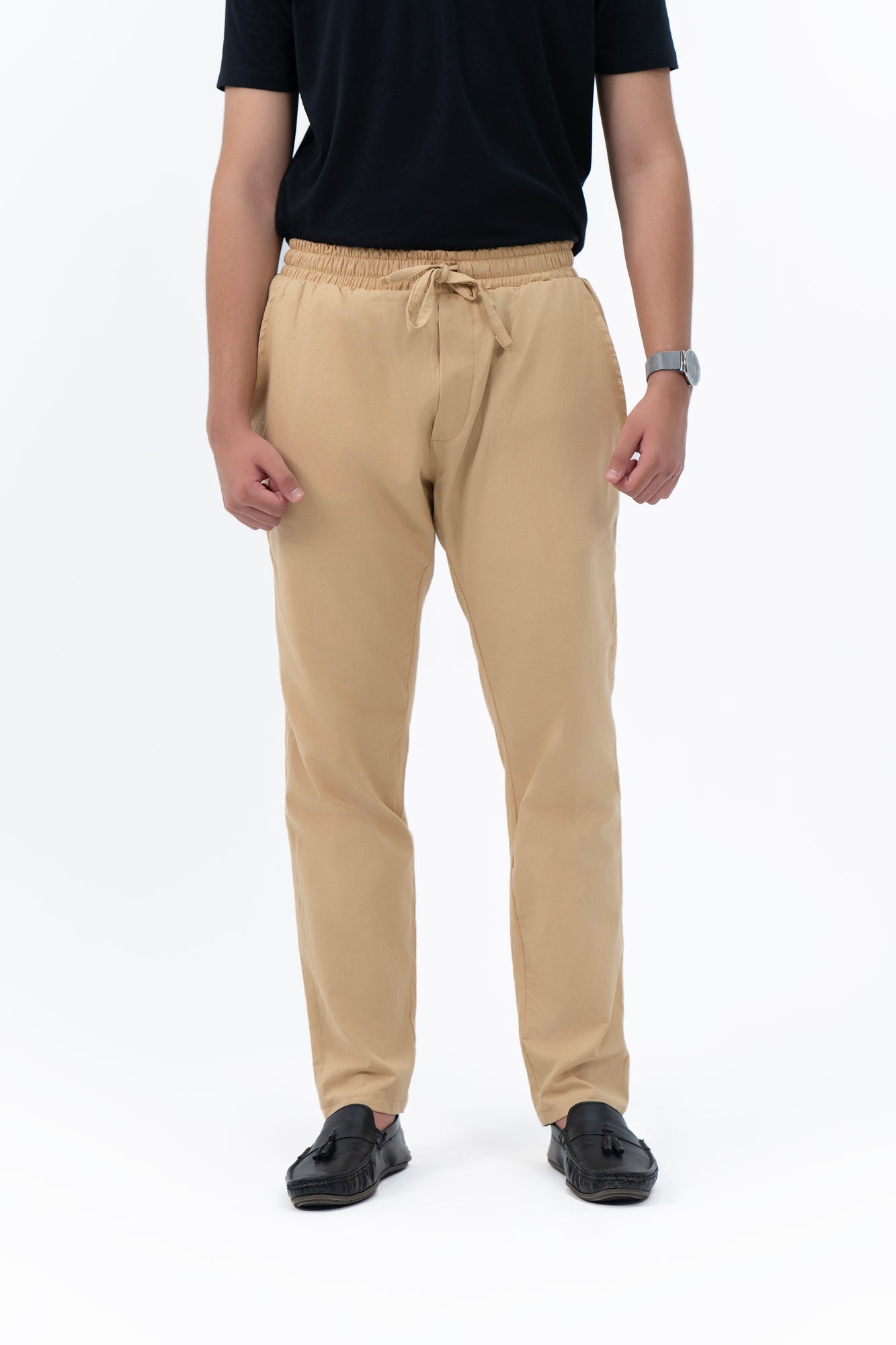 Men's Linen Pant with Drawstring - Khaki