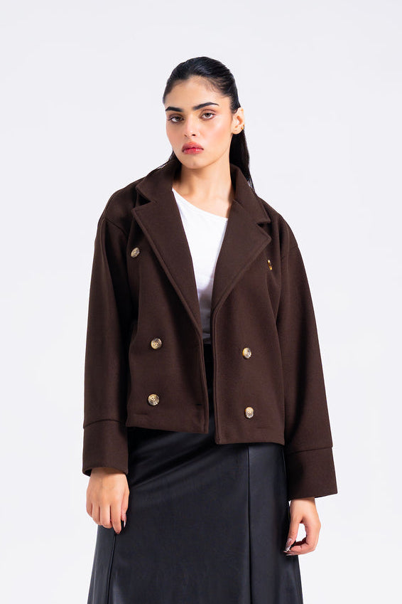 Double Breasted Wool Jacket - Chocolate Brown