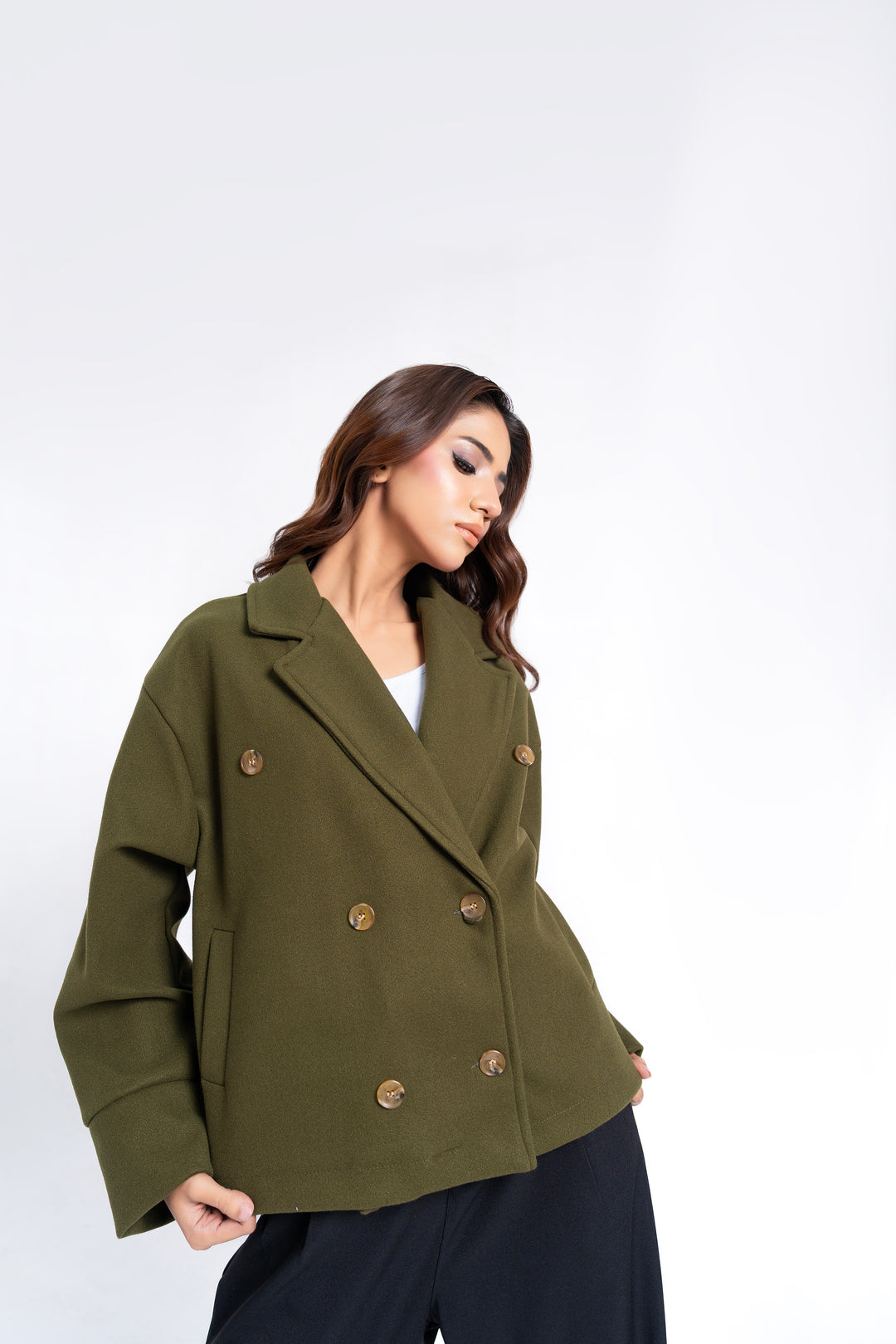 Double Breasted Wool Jacket - Olive Green