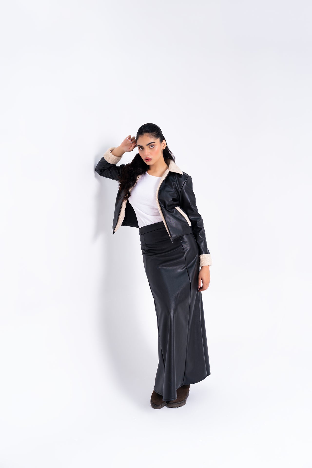 This premium leather jacket combines timeless style with functional comfort. The sherpa-lined collar, cuffs, and pocket openings provide warmth without bulk, while the front zip closure ensures easy layering. Long sleeves and side pockets with sherpa detailing add both practicality and texture.