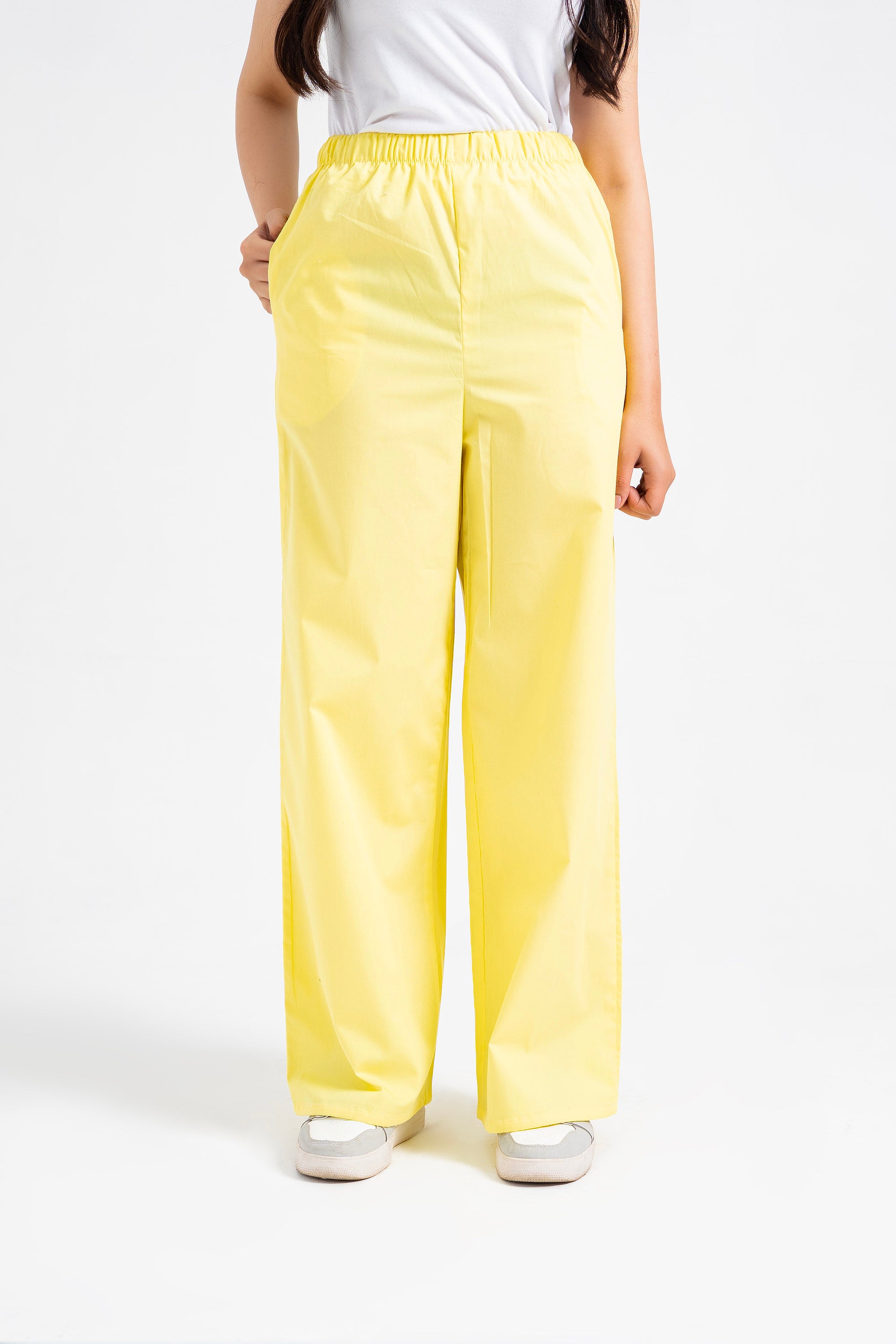 Crafted from premium textured fabric, these wide-leg pants deliver effortless sophistication with a relaxed silhouette that flatters all body types. The elasticated waist ensures comfortable all-day wear without compromising on style, while functional side pockets provide practical storage.