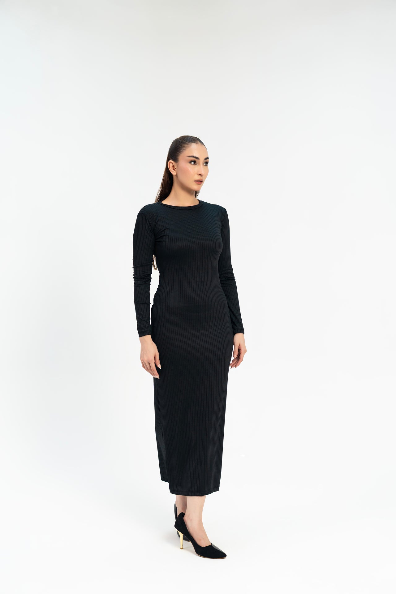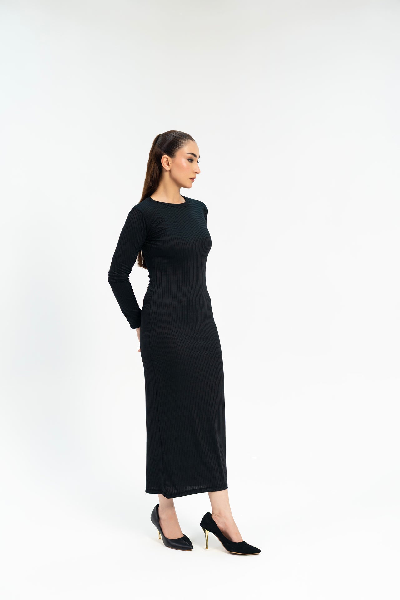 This Round Neck Knitted black Dress features a fitted silhouette and a ribbed design that enhances texture and structure. Its full sleeves provide added coverage and comfort, making it an excellent choice for cooler weather or layering. The knit fabric ensures flexibility and ease of movement while maintaining a polished, refined look suitable for both casual and professional settings.