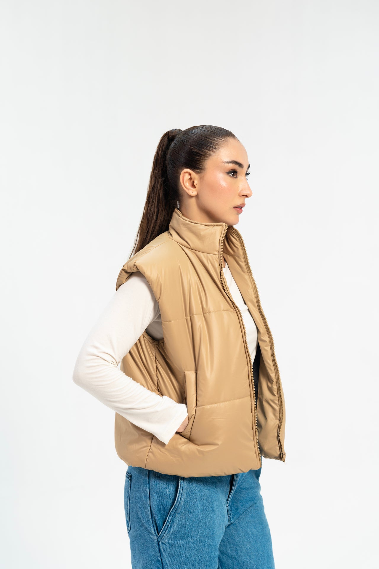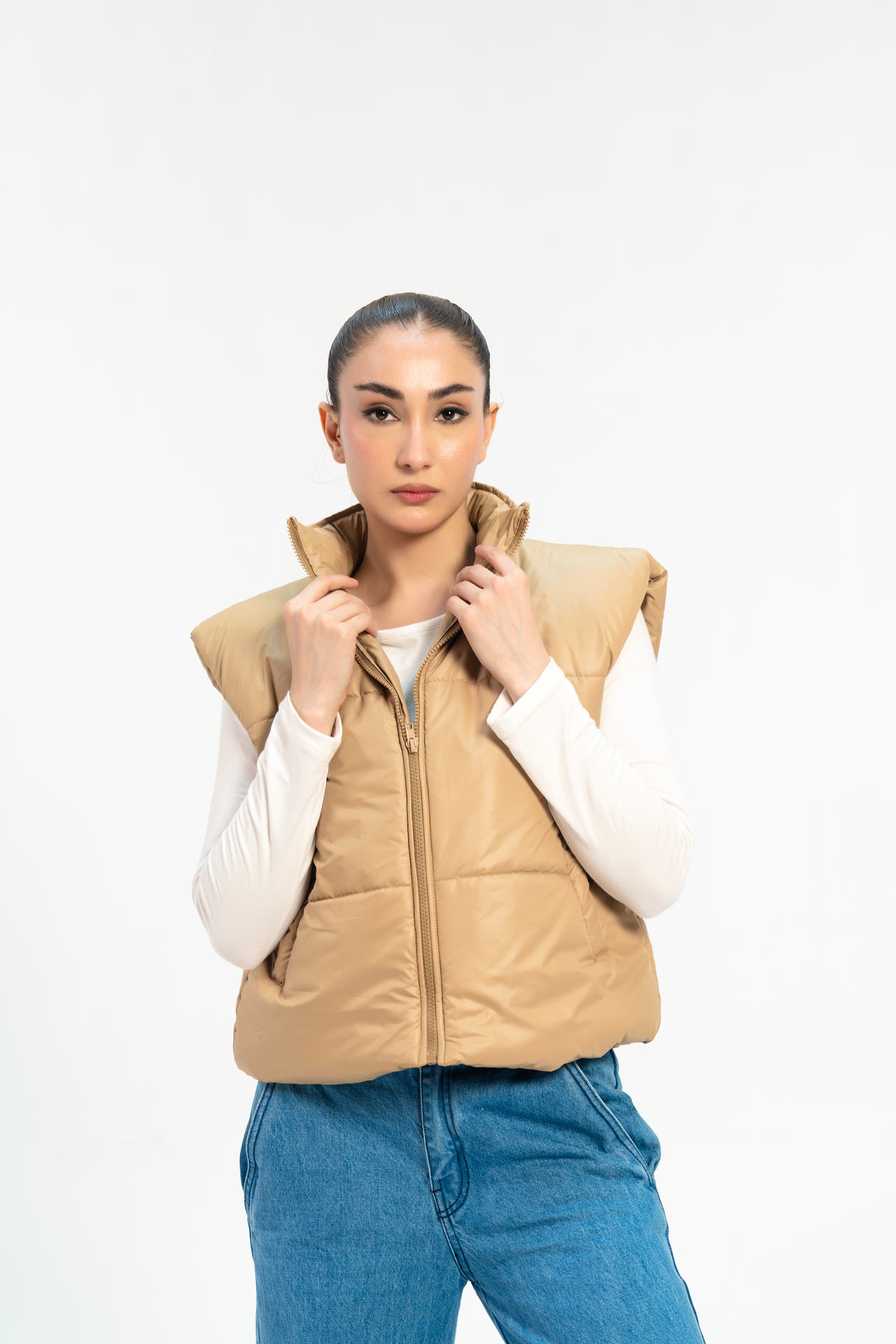 Boxy Fit Puffer Vest - Light Brown