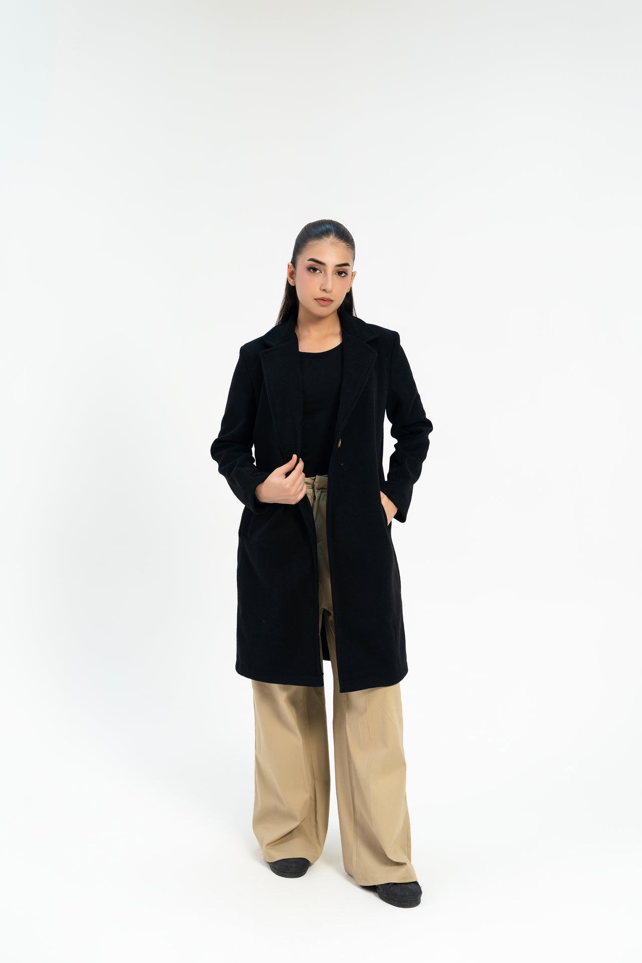 Classic One-Button Wool Coat - Black