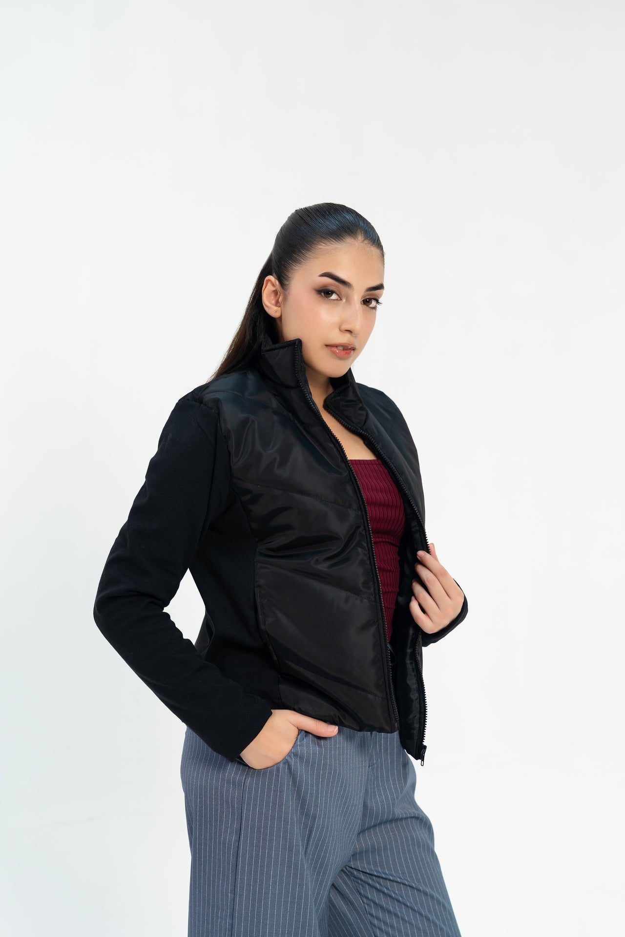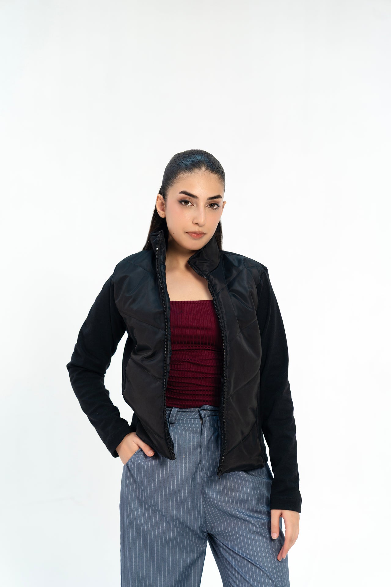 Contrast Panel & Sleeves: Ribbed Knit Fabric