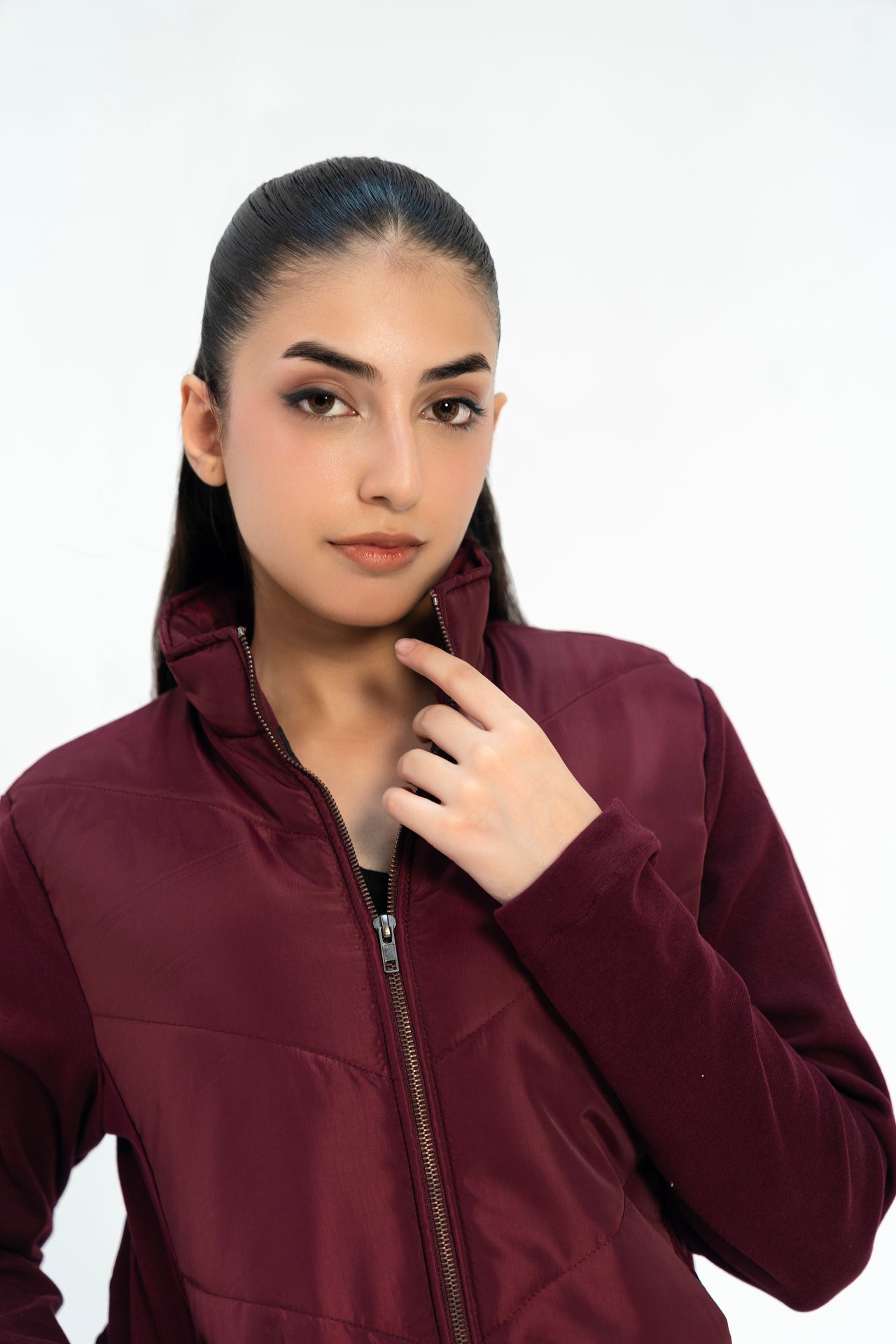 Contrast Panel & Sleeves: Ribbed Knit Fabric