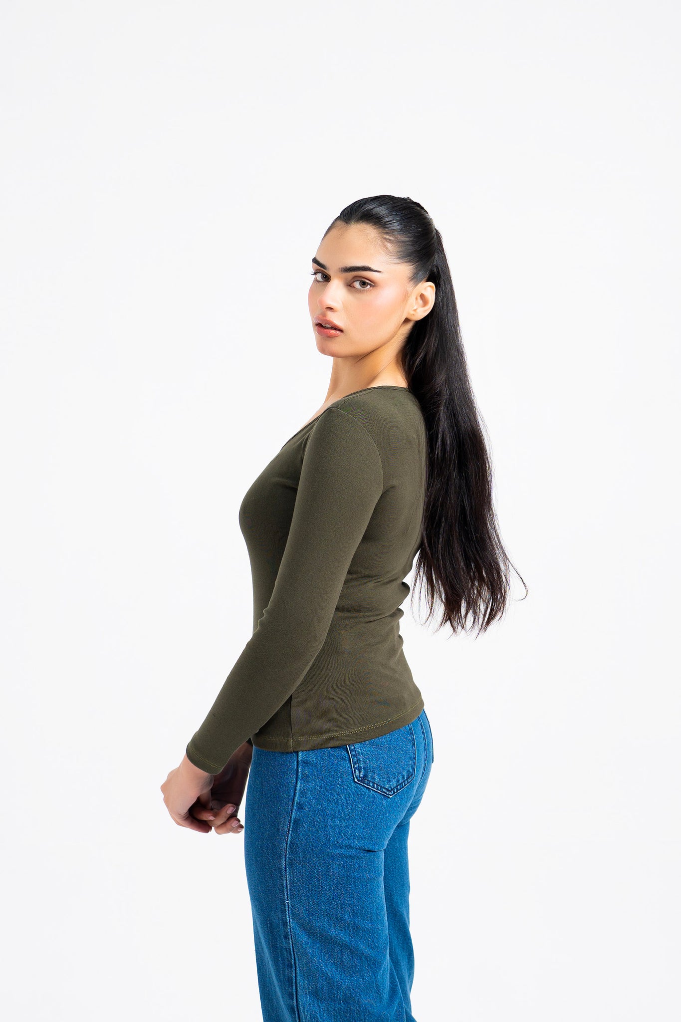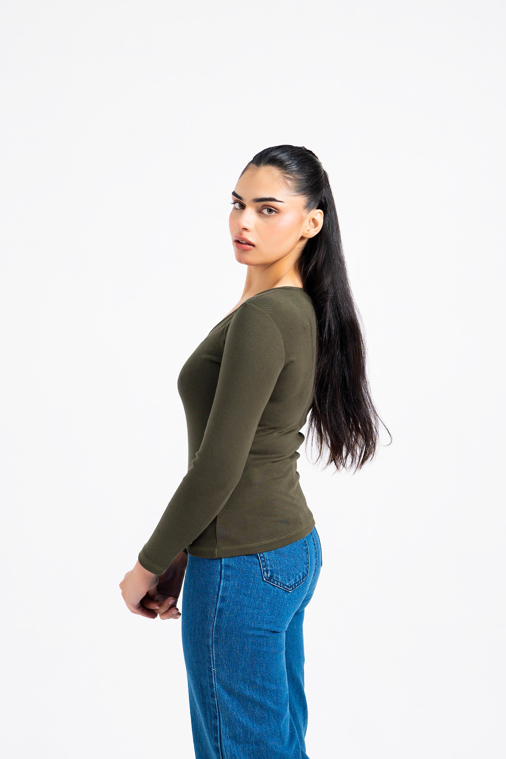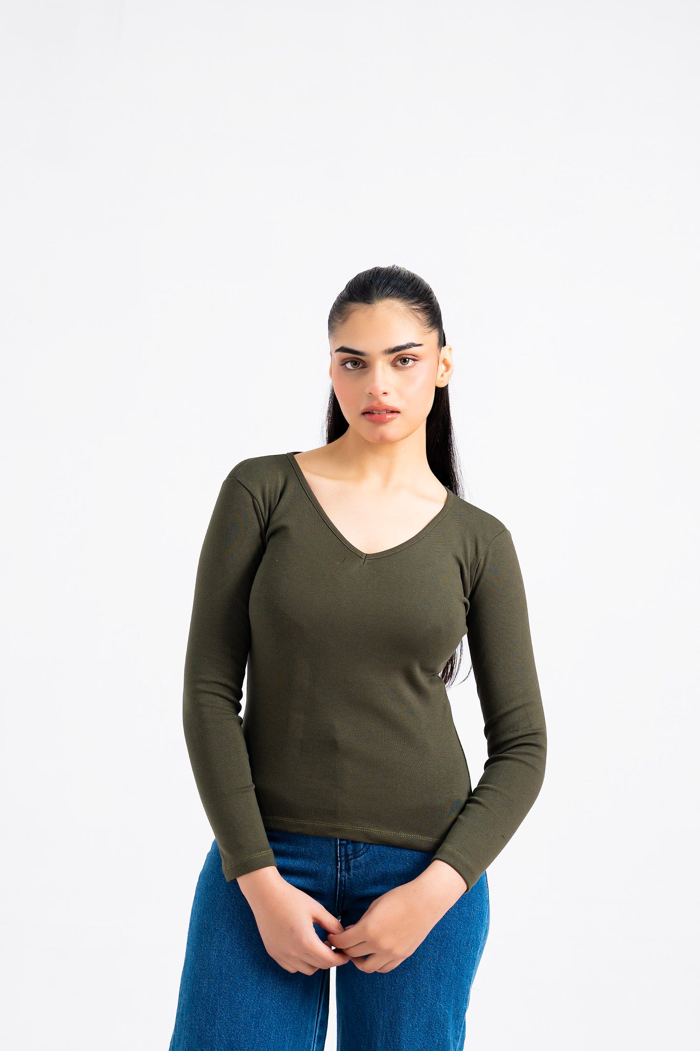 Elevate your wardrobe with this sophisticated V-neck ribbed top, designed for a refined silhouette. The full sleeves provide versatile coverage while the fitted cut accentuates your natural shape with precision tailoring. Crafted from quality ribbed fabric, this piece offers both comfort and structure, making it an essential layering piece or standalone statement.