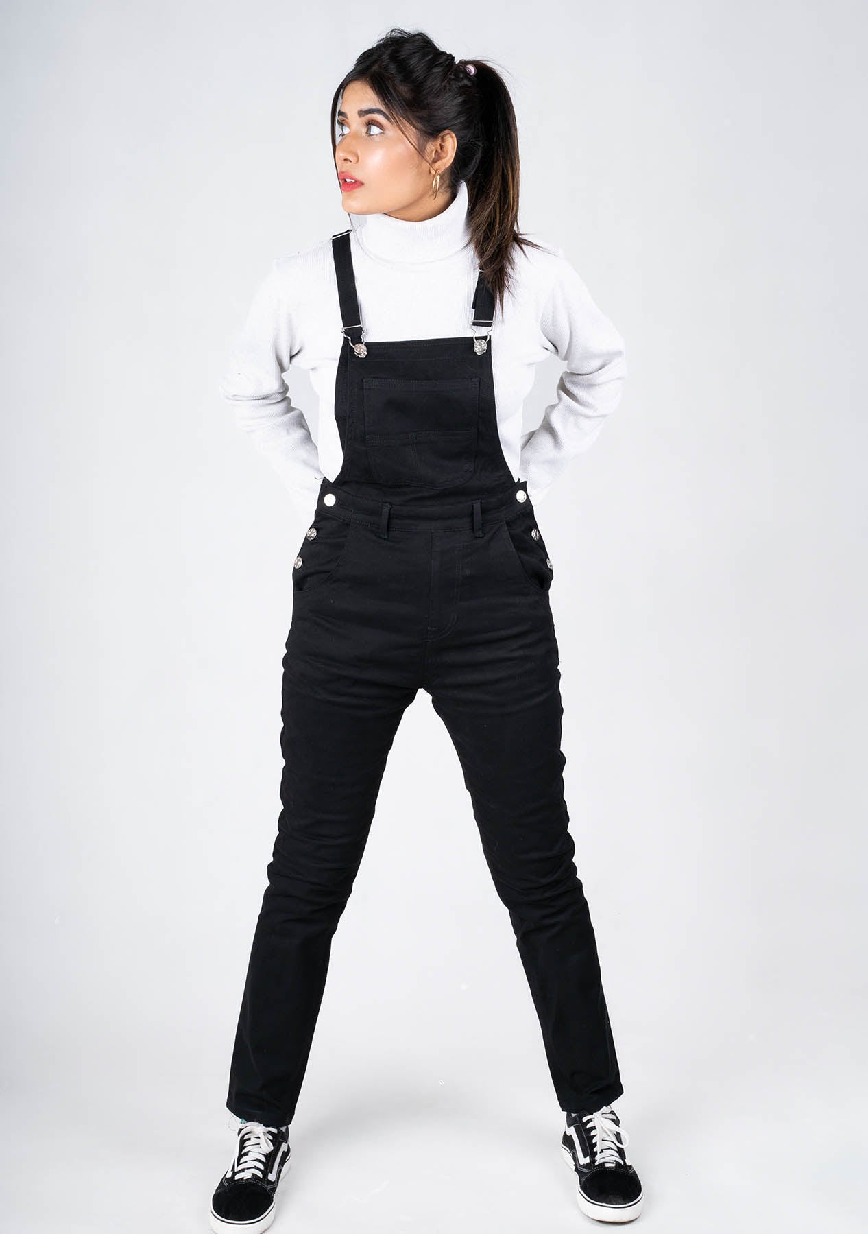 Our black denim dungarree has become a hot seller because of its stylish and chic look! this can be worn in both the summer and the winter season. Just swap the high-neck with a plain tee and you are good to go!