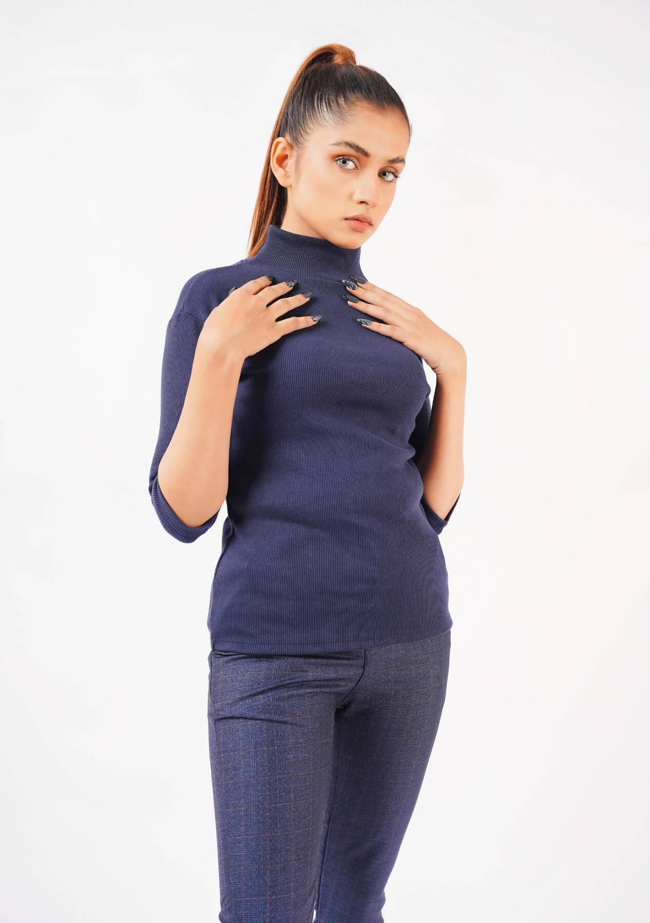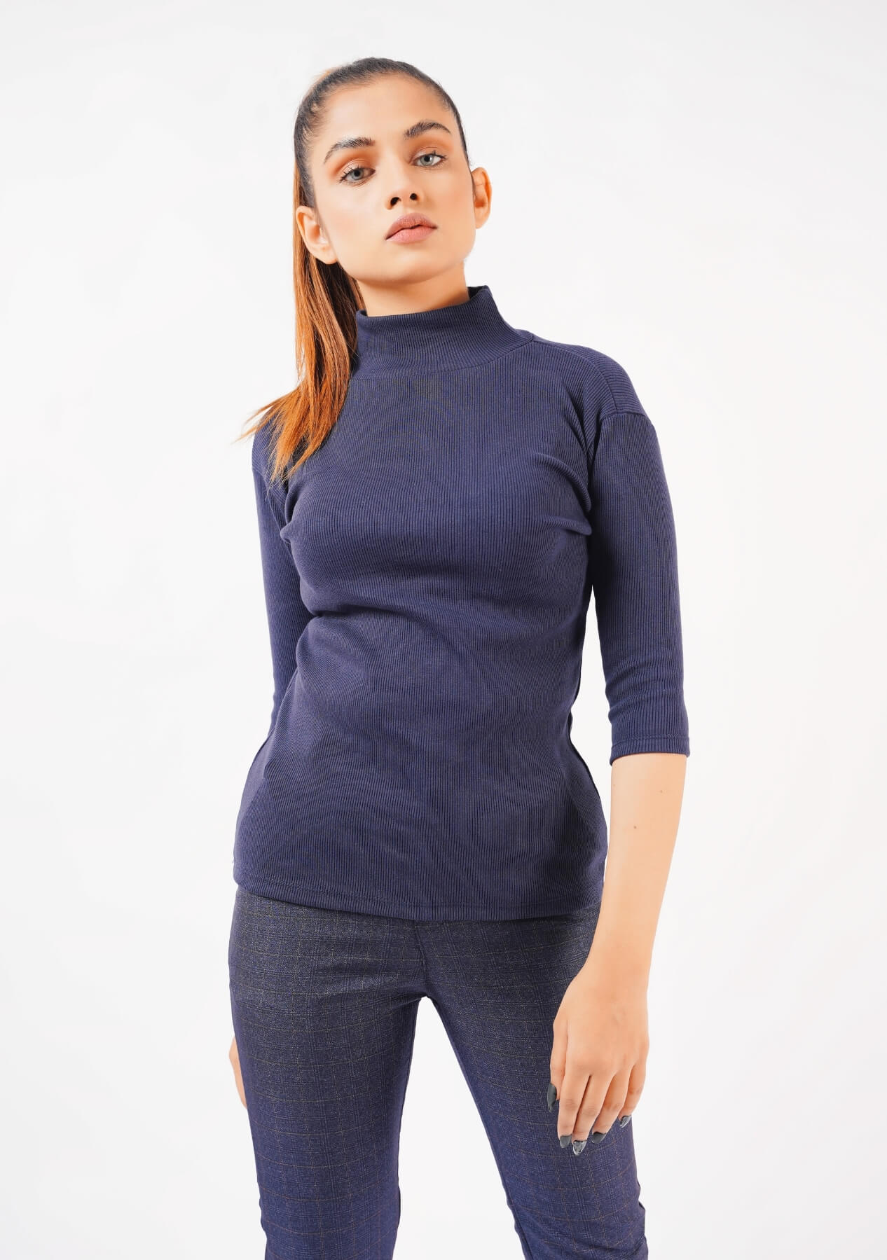 Color: Navy BlueLength: 22 inchesFabric: Ribbed Knit (Cotton Polyester Mix)Model Wearing: XS