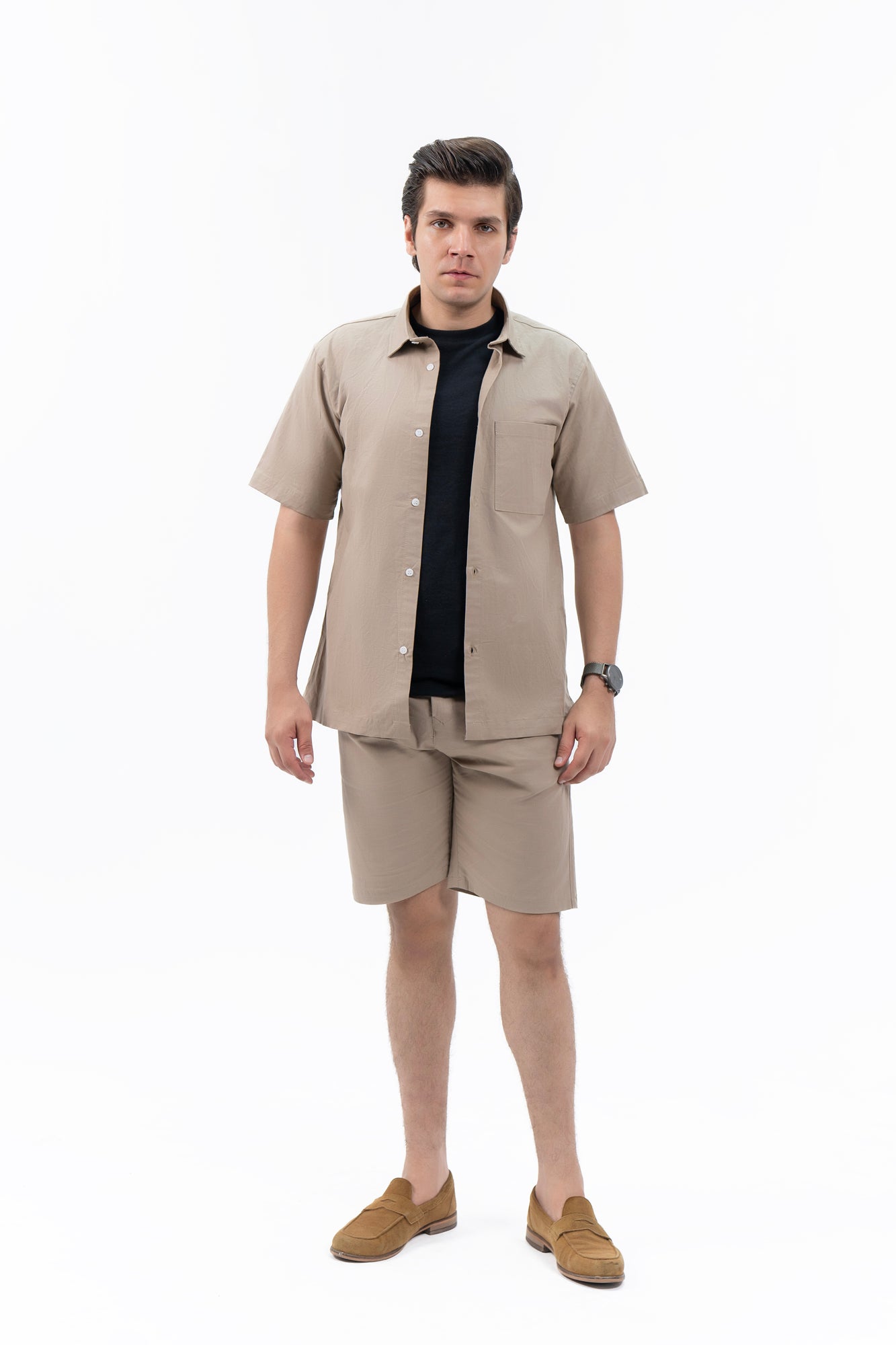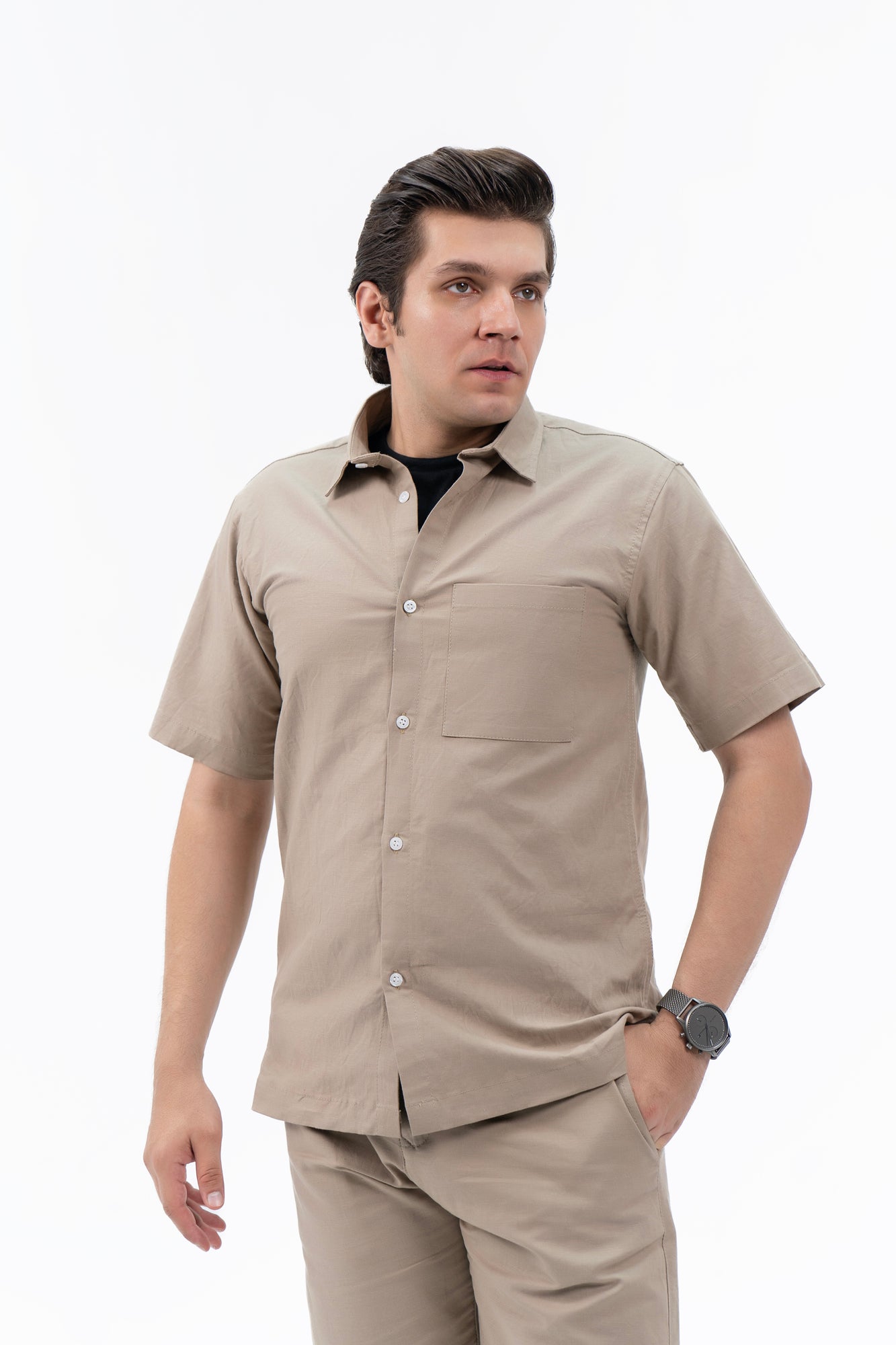 Men's Regular Fit Short Sleeved Linen Shirt - Dark Beige