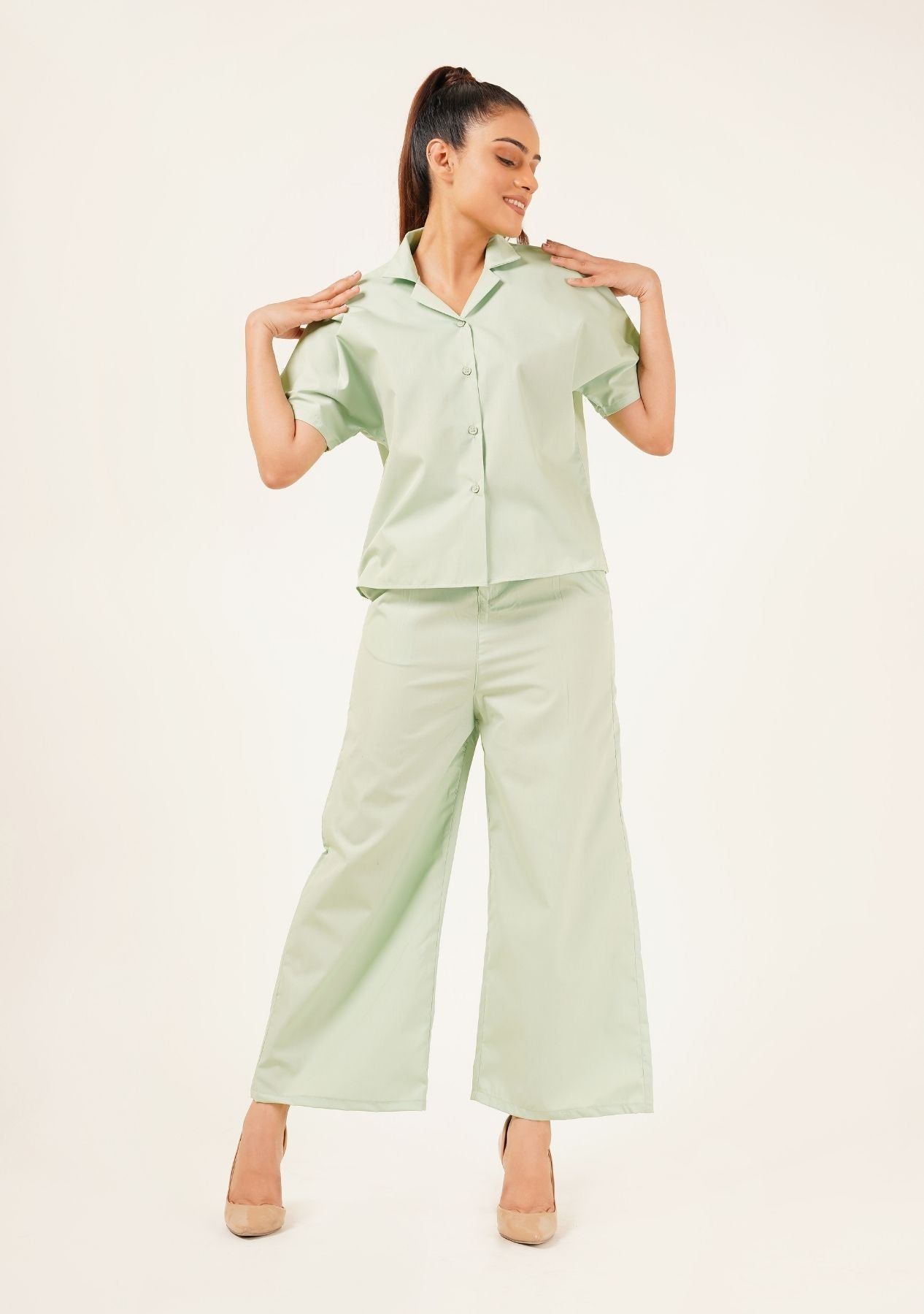 Short Sleeve Collared Top - light green