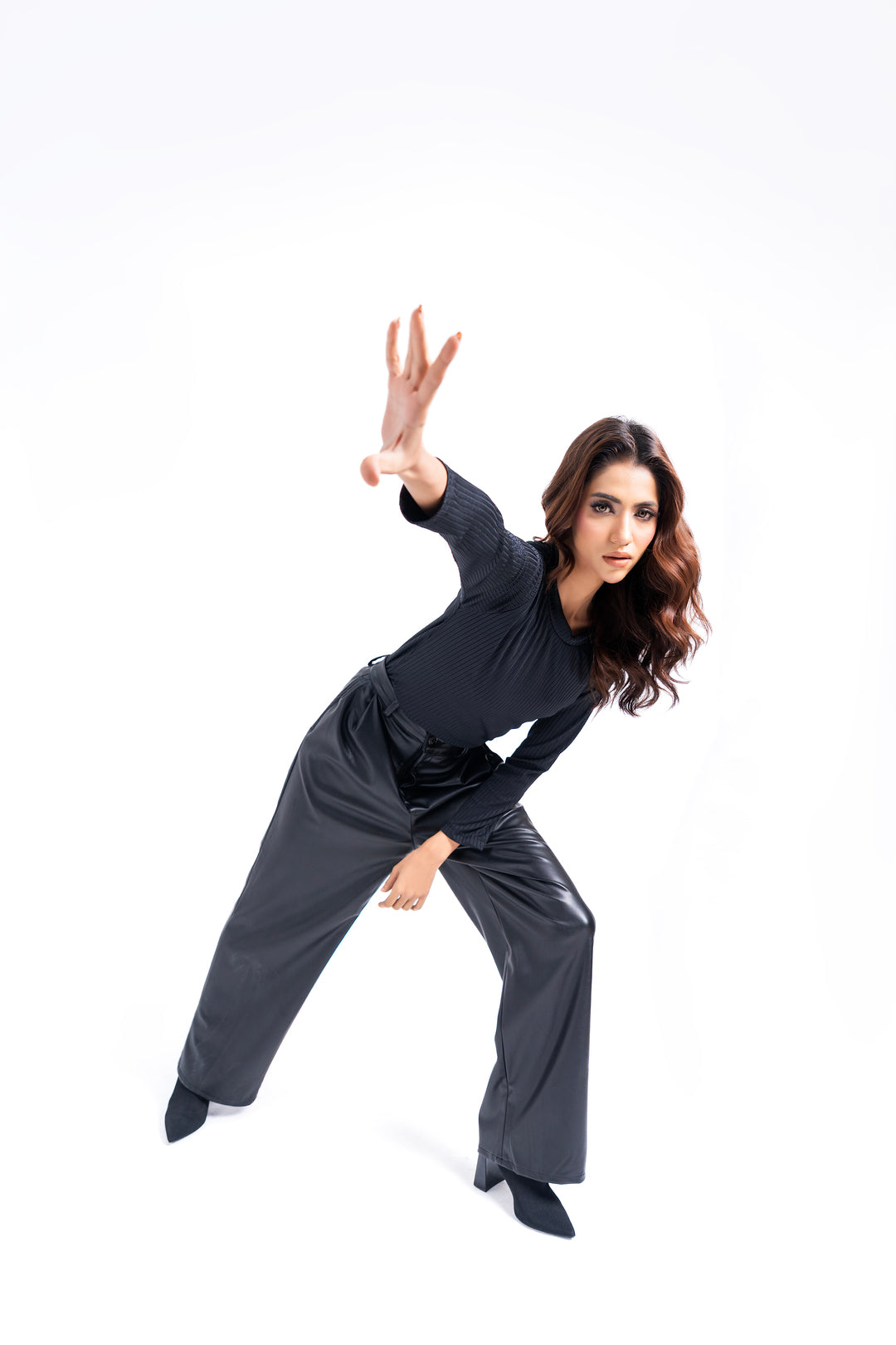 Classic black round neck tee with long sleeves and a fitted cut. Perfect for layering or wearing solo, this versatile staple works for casual outings and everyday wear. The snug fit flatters your frame while the breathable fabric keeps you comfortable throughout the day.