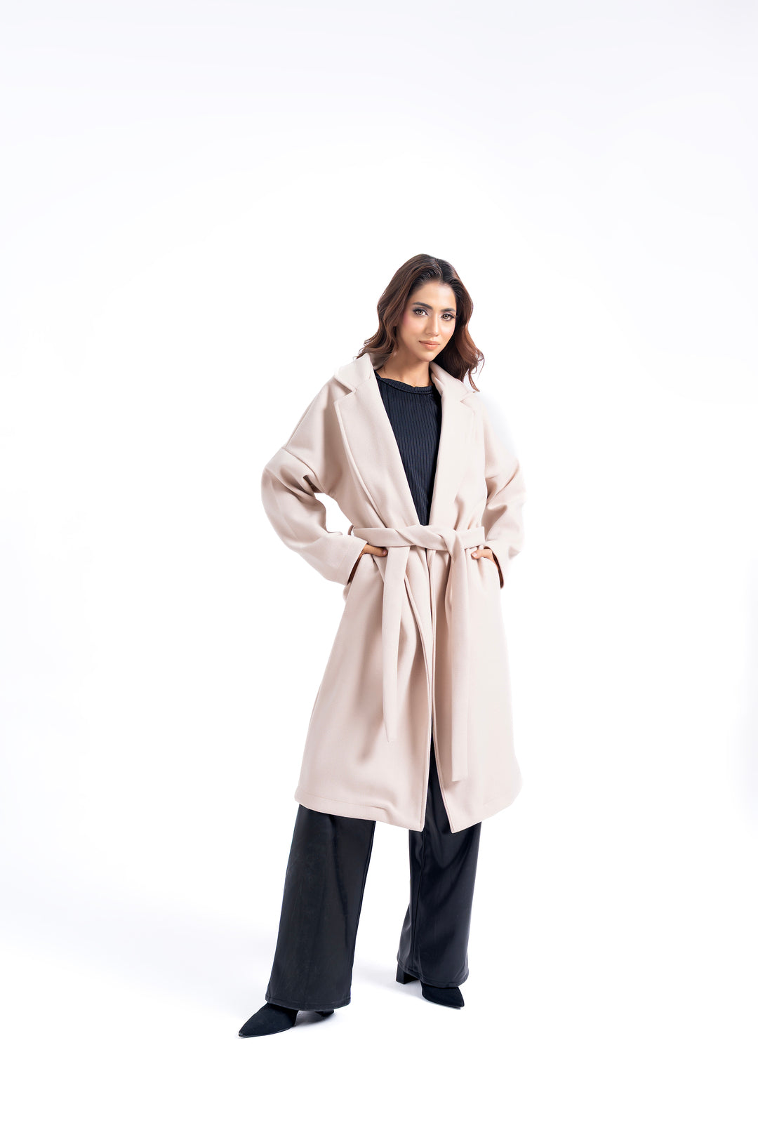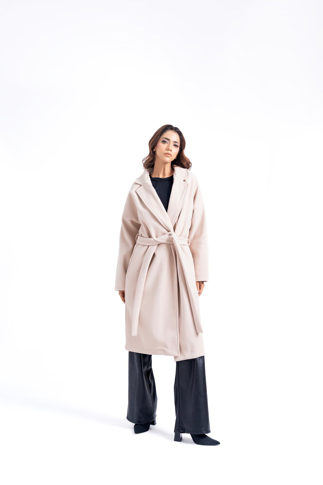 Oversized Belted Wool Coat - Cream