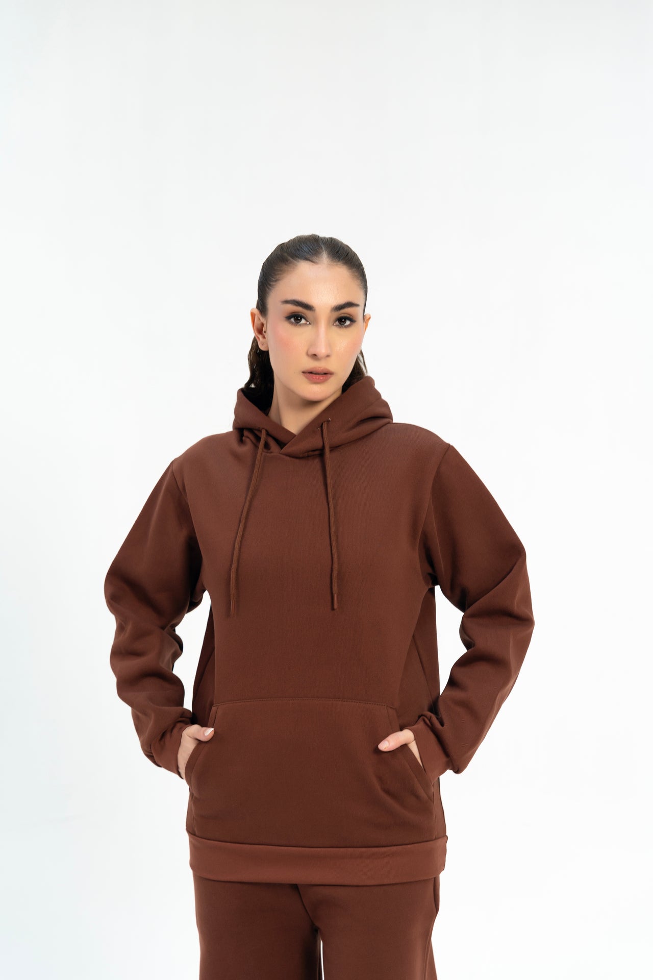 Experience cozy comfort with this oversized hoodie in rich chocolate brown. Crafted from soft fleece, it features a relaxed boxy silhouette with drop shoulders for effortless layering. Practical details like a kangaroo pocket and ribbed cuffs and hem add durability and style. The adjustable hood drawstring ensures a customizable fit. For a more fitted look, consider sizing down. Ideal for casual wear, this hoodie balances warmth and laid-back appeal with expert design.