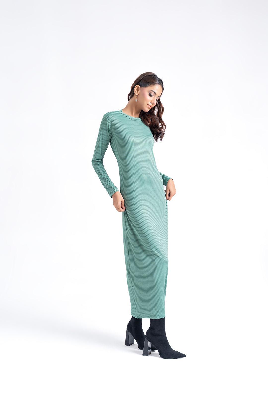 This sage green knitted dress combines timeless elegance with practical design. The round neckline offers a flattering, versatile silhouette that works for both casual and semi-formal occasions. The fitted cut accentuates your natural shape while the ribbed knit fabric provides structure and comfort. Full sleeves deliver warmth and sophistication, making this piece ideal for layering or wearing standalone.