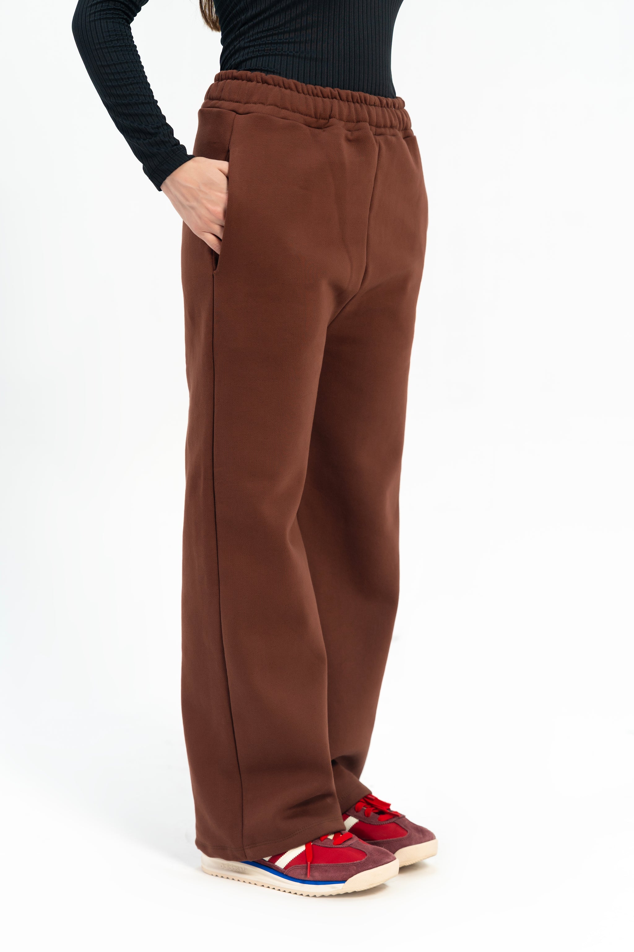 Experience comfort and style with these chocolate brown fleece sweatpants featuring an inside drawstring for an adjustable fit. Designed with side pockets for practicality and a straight wide leg cut, they provide both ease of movement and a contemporary look. Ideal for relaxed days or casual outings, these sweatpants combine softness and functionality effortlessly.